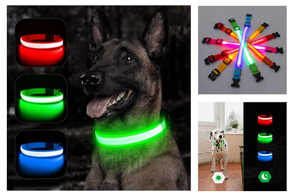Coleira de Cão Brilhante Recarregável Led, Ajustável, Luminous Collar Luminous Pisca-Pisca.